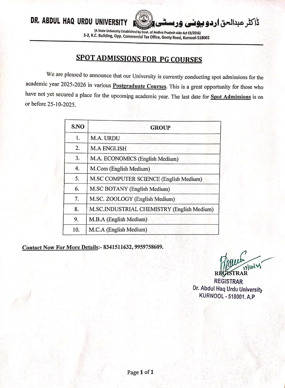 For Admission related information for UG and PG Courses, Please Contact: +91 8341511632, +91 9959758609